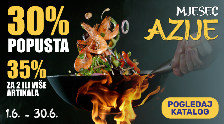Upustite se u svijet okusa koje donosi azijska hrana. Za tu smo prigodu pripremili katalog najpopularnijih azijskih wokova, noževa, rezalica, posuda za kuhanje na pari ali i štapića za jelo, mlinaca i ribeža za začine. Tu su i kalupi za izradu sushija, najpopularnijeg azijskog jela!