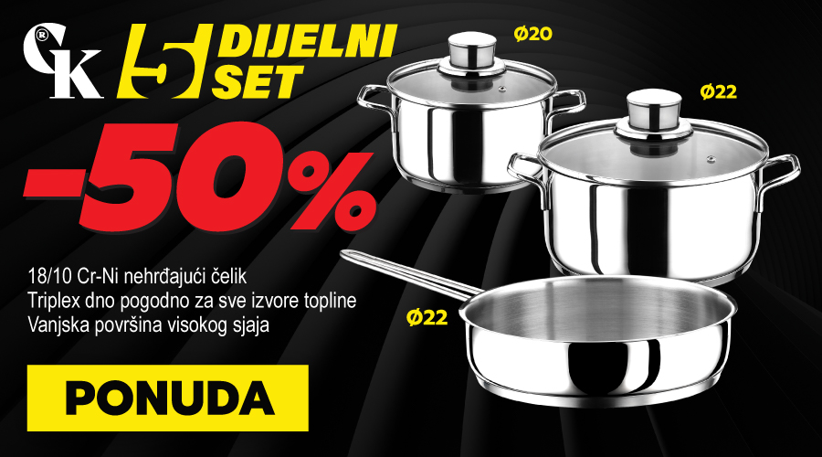 Bilo da opremaš prvi stan, apartman ili vikendicu – ovaj set donosi odličan omjer cijene i onoga što dobiješ. Kompaktan je, jednostavan za održavanje i spreman za svakodnevno kuhanje bez viška komada. Uz akciju -50% i cijenu od samo 39,75€, dobivaš pouzdano inox posuđe koje pokriva sve osnove kuhanja.