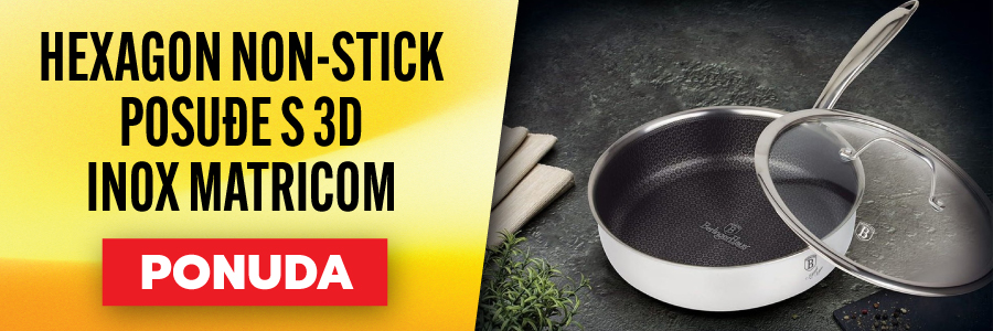 Hexagon posuđe donosi inovativnu kombinaciju izdržljivosti i neljepljivih svojstava zahvaljujući posebnoj saćastoj 3D strukturi unutrašnjosti. Ova tehnologija štiti površinu od ogrebotina i omogućuje pripremu hrane s manje masnoće. Idealno je za intenzivno kuhanje, pečenje mesa na višim temperaturama i svakodnevnu uporabu bez straha od trošenja premaza. Moderno rješenje za kuhinju koja traži više.