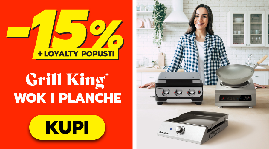 Ugrabite 15% popusta na Grill King planche i wok kuhalo uz dodatne loyalty pogodnosti. Brzo, sočno i pod potpunom kontrolom – kuhanje kakvo želiš, bez ograničenja. Ponuda vrijedi od 28. ožujka do 5. travnja 2026.